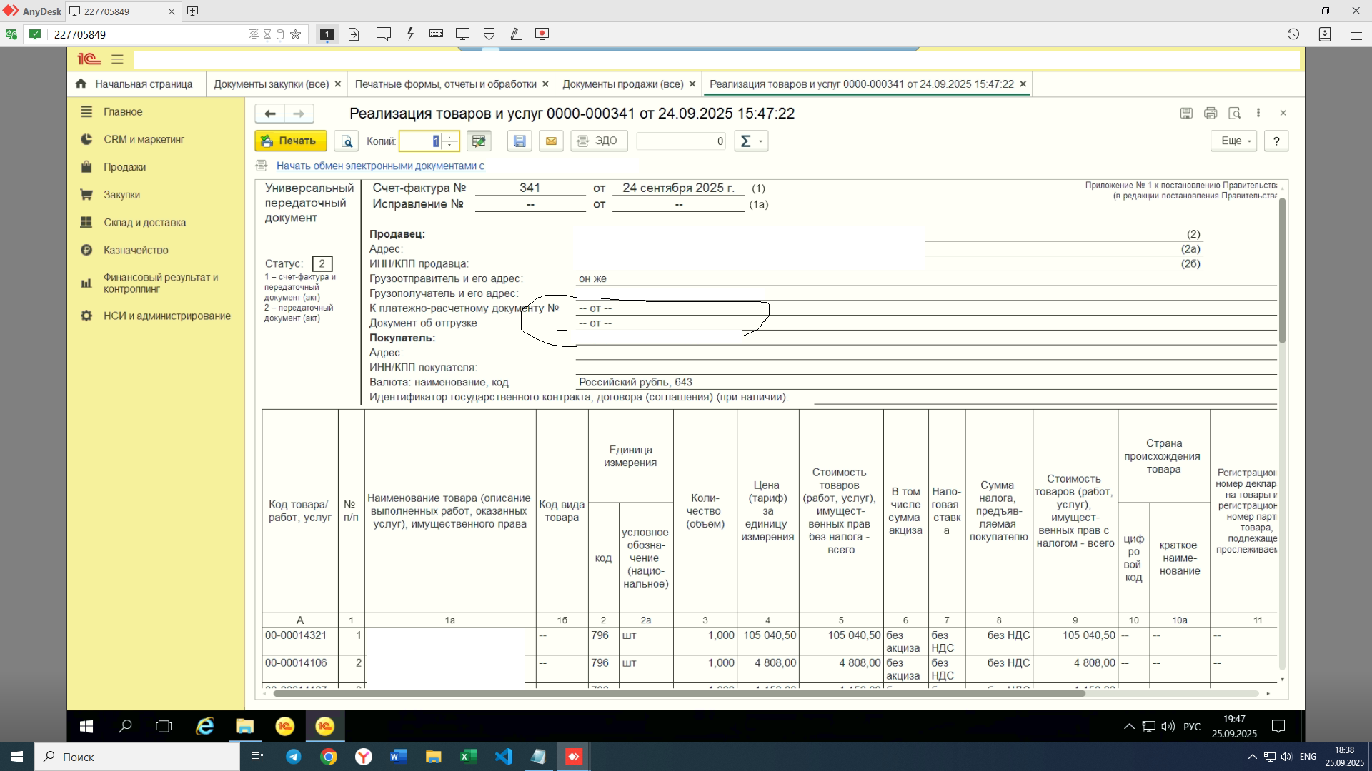 2. При печати СФ или УПД датой ранней 01.10.24 могла выходить ошибка