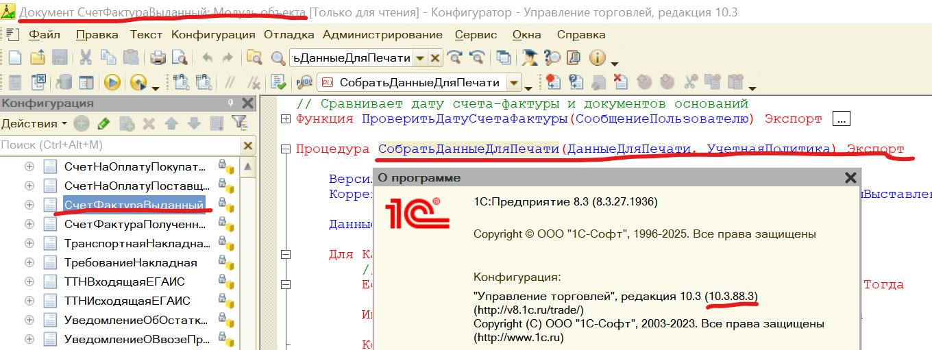 Обработка написана для конфигурации 1С Управление торговлей 10.3
