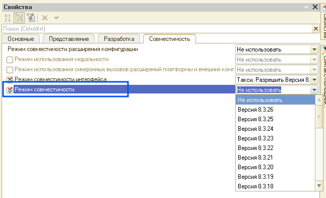 ВАЖНО!!! Может потребоваться изменить режим совместимости расширения в соответствии с используемой конфигурацией. Сейчас установлен "Не использовать".