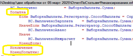 Обработка предназначена для анализа выплат, налогов, удержаний в разрезе сотрудников, подразделений и источников финансирования.