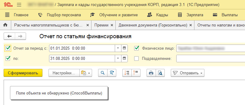 Отчет по выплатам не формируется. Не верное имя колонки.