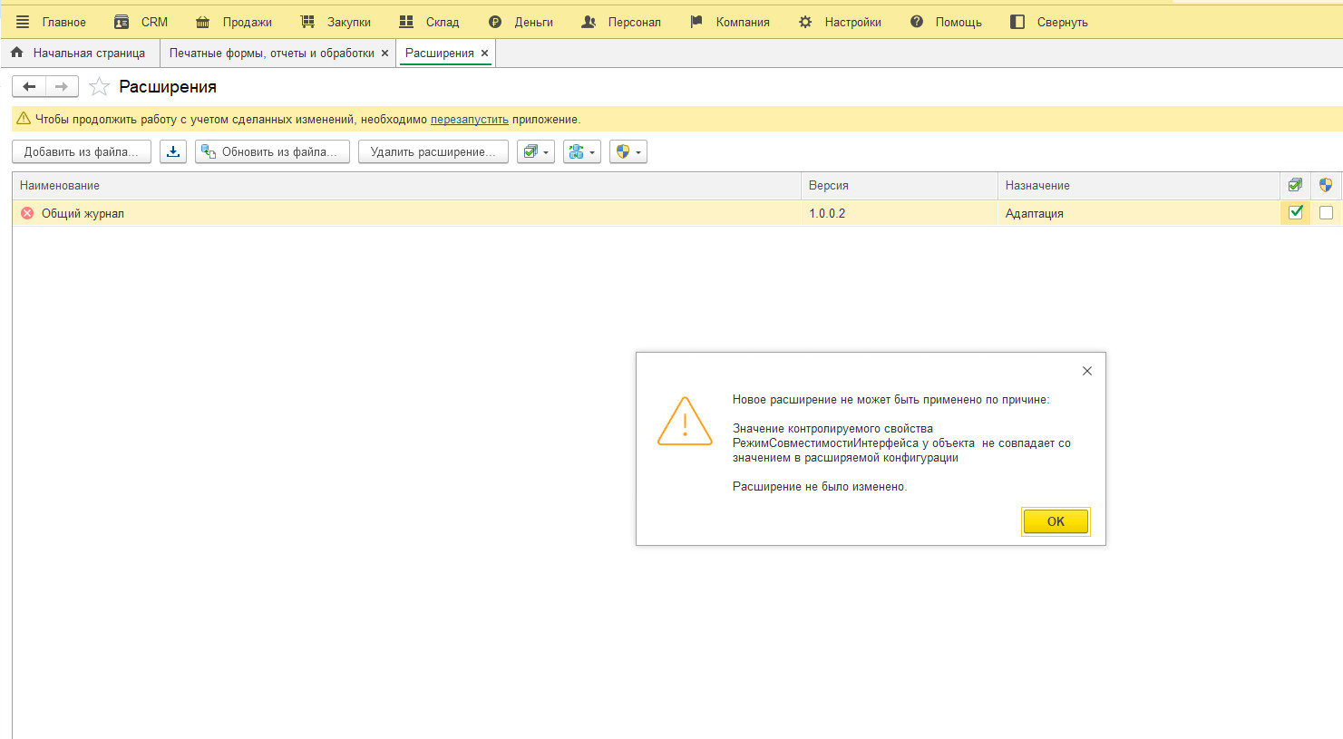 4. Расширение не подойдет для базовых версий конфигураций (пользуйтесь обработкой)