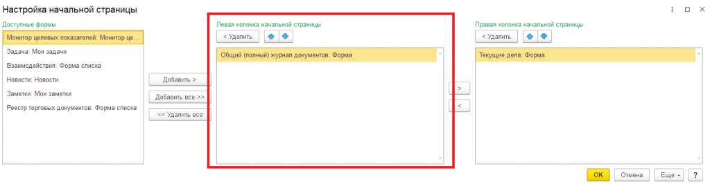 Для создания собственного журнала с необходимым набором документов и отборов, необходимо: