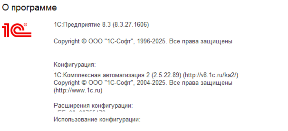 - 1С:Комплексная автоматизация 2, релизы 2.5.25.56, 2.5.24.68, 2.5.24.65, 2.5.24.43, 2.5.21.125, 2.5.21.120