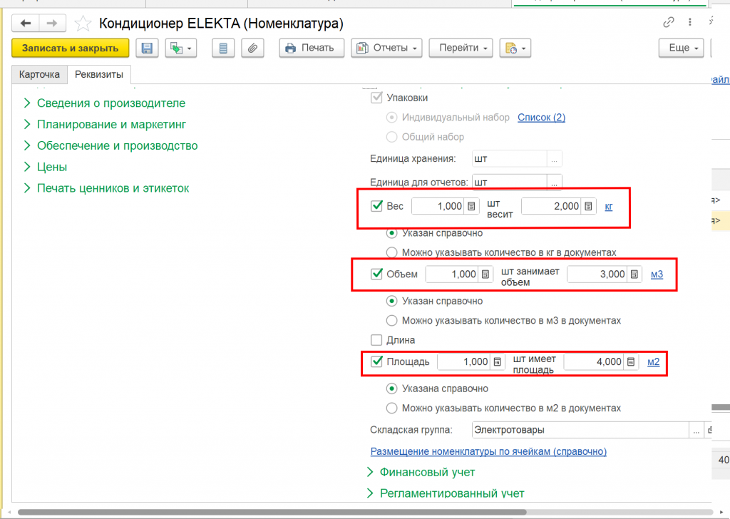 Сначала обратите внимание на то, чтобы в справочнике "Номенклатура" были заполнены вот эти данные: