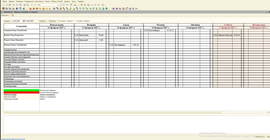 Планировщик заказов покупателя и задач на неделю по сотрудникам для УТ 10.3, график, календарь
