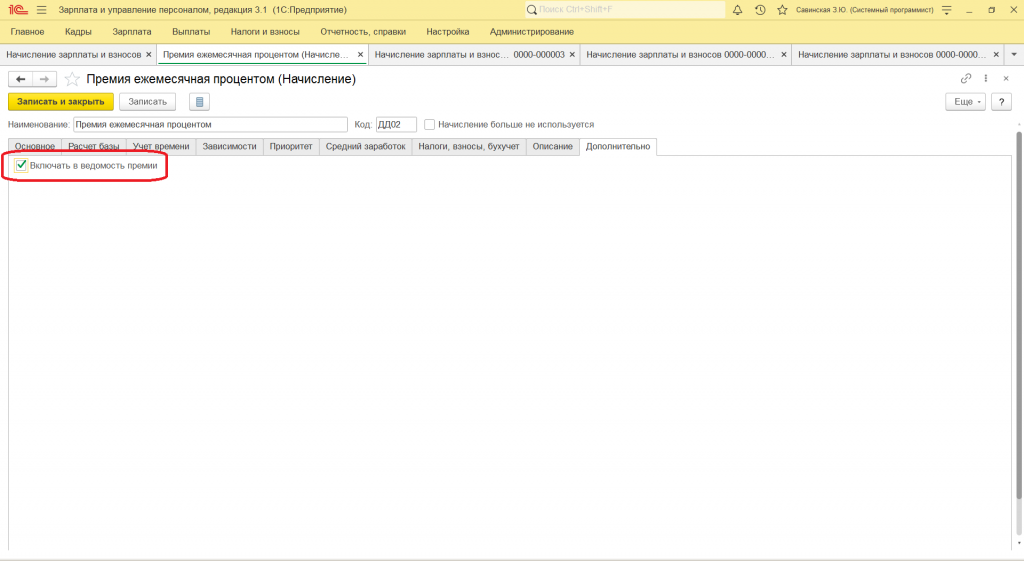 - назначаем этот доп реквизит нужным начислениям или одному начислению
