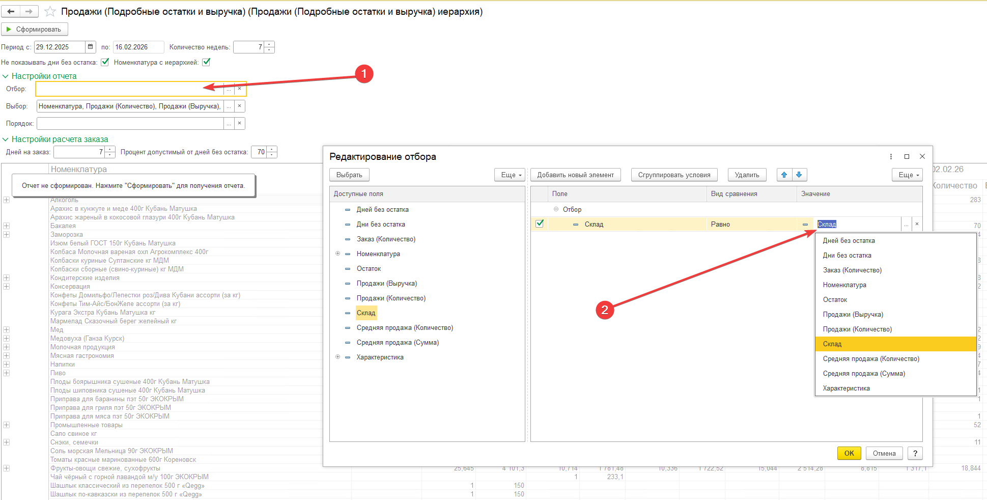 Расширение "Подробный отчет по продажам с остатками + Расчет заказа"