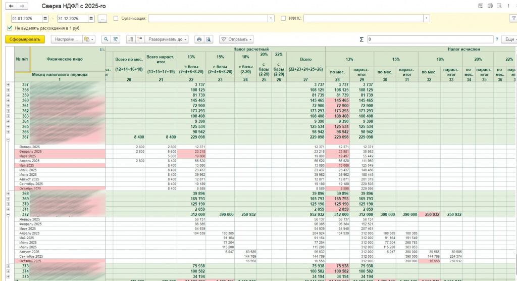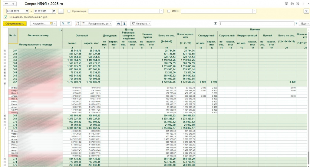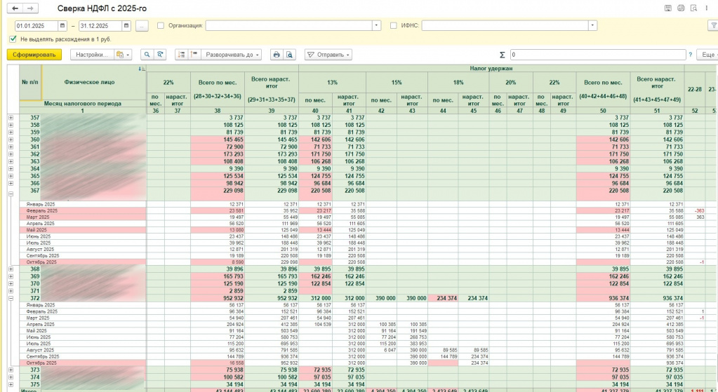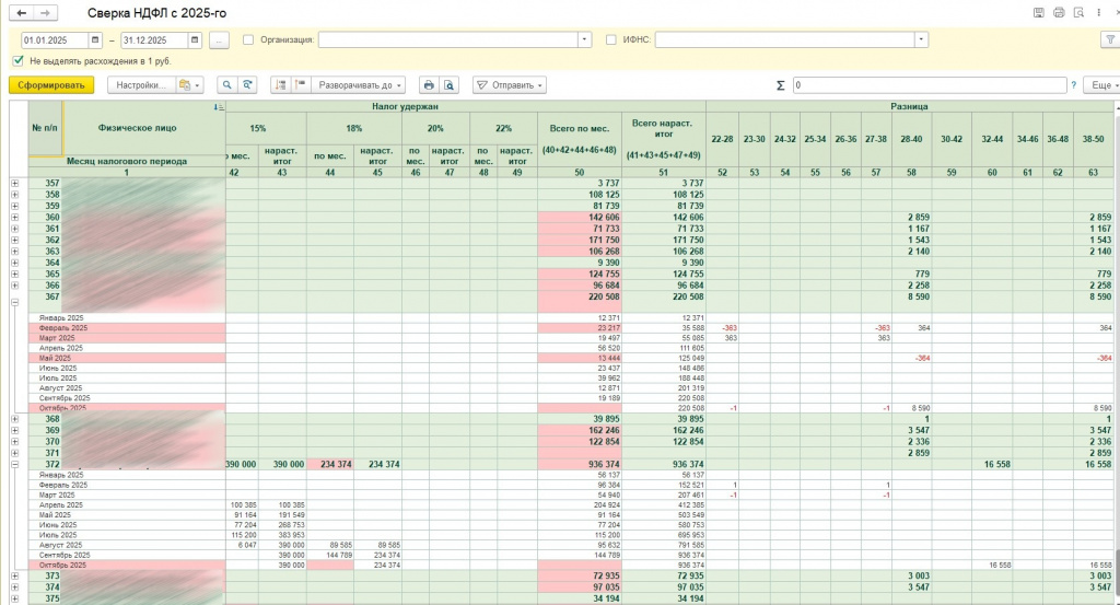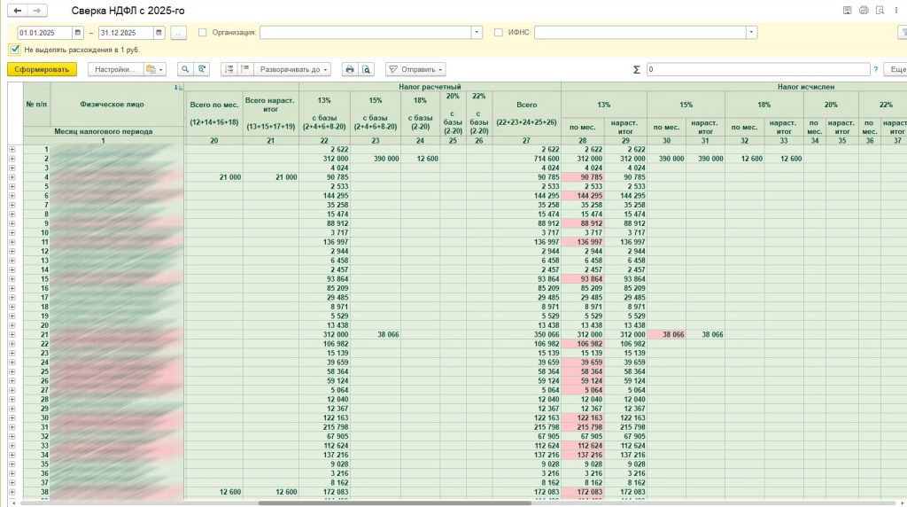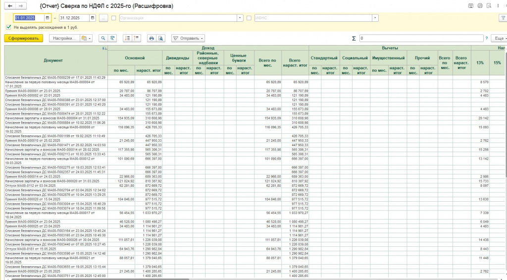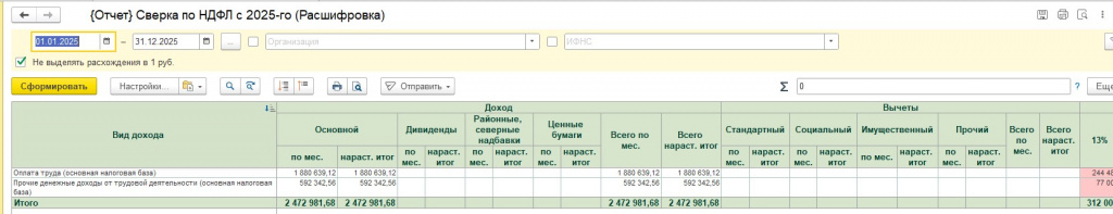 Сверка НДФЛ в 2025-м году для ЗУП 3.1, ЕРП 2.5