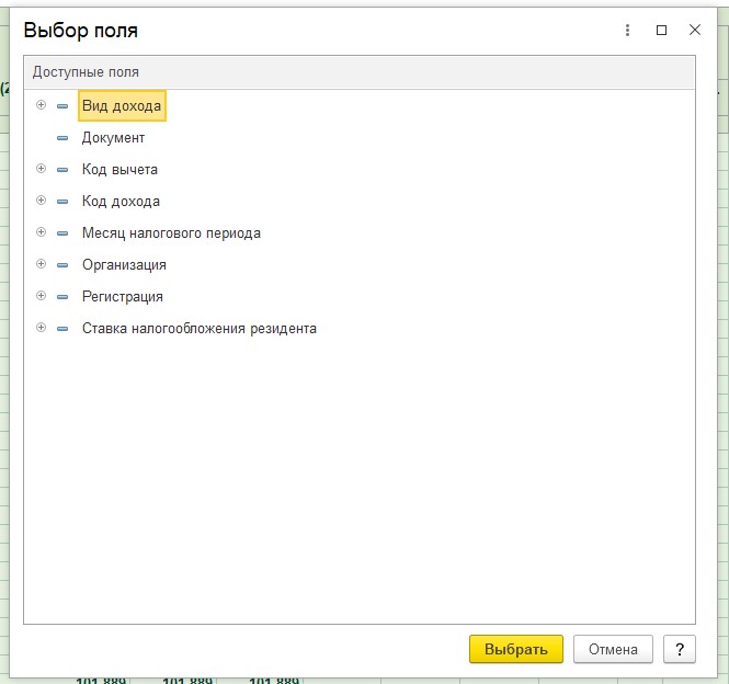 При двойном клике на любом значении в строке отчета доступна расшифровка по документам-регистраторам, периоду получения дохода, регистрации в ИФНС, коду дохода, категории дохода и т.д..