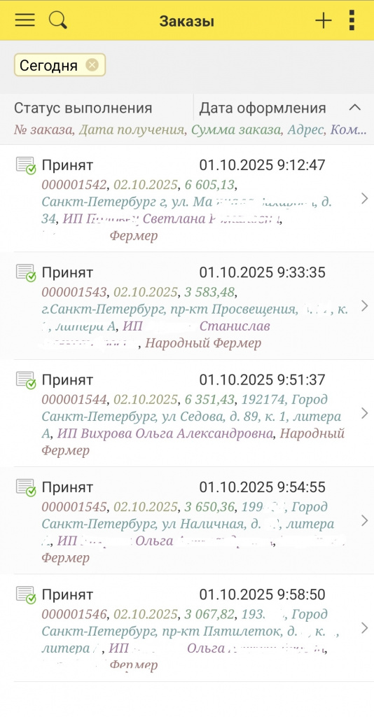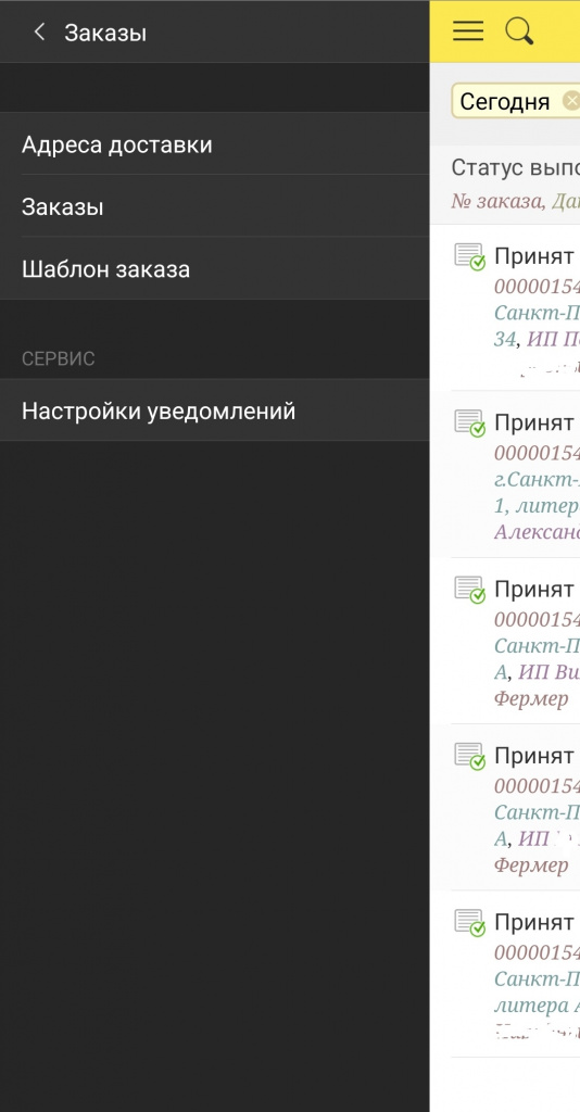 После выгрузки идентификаторов документов из "1С Бухгалтерия" и поступления в приложение "Заказы" - статус заказа меняется на "Принят". После получения такого статуса уведомления о принятии заказа отправляются на электронную почту клиентов, при условии, что настройка включена.