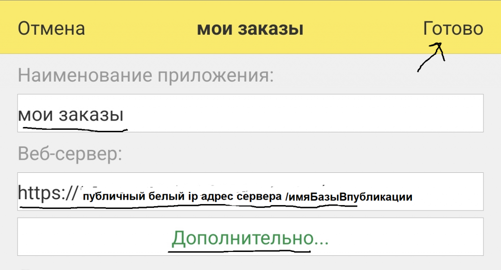 На данный момент в AppStore опубликована универсальная версия мобильного клиента для 1с для смартофонов на Iphone - для версии платформы 1С 8.3.19.1770. Поэтому на выделенном сервере для размещения базы данных рекомендуется установить эту версию платформы 1С, для android-смартфонов существует поставка мобильного клиента для 1С формата apk (например: "1cem-client-arm64.apk"). После установки на смартфон мобильного клиента необходимо добавить и прописать путь к приложению заказов.