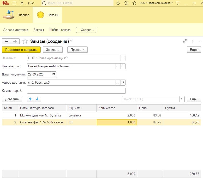 - Адрес доставки указывается из списка доступных (если адрес доставки не указан- самовывоз)