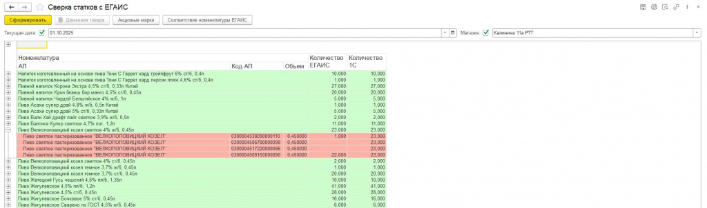 отчет ЕГАИС остатки остатки ЕГАИС алкоголь пиво