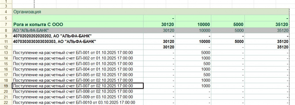 Можно дополнительно расшифровать по документам, статьям ДДС, контрагентам.
