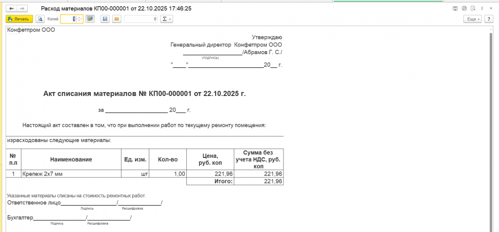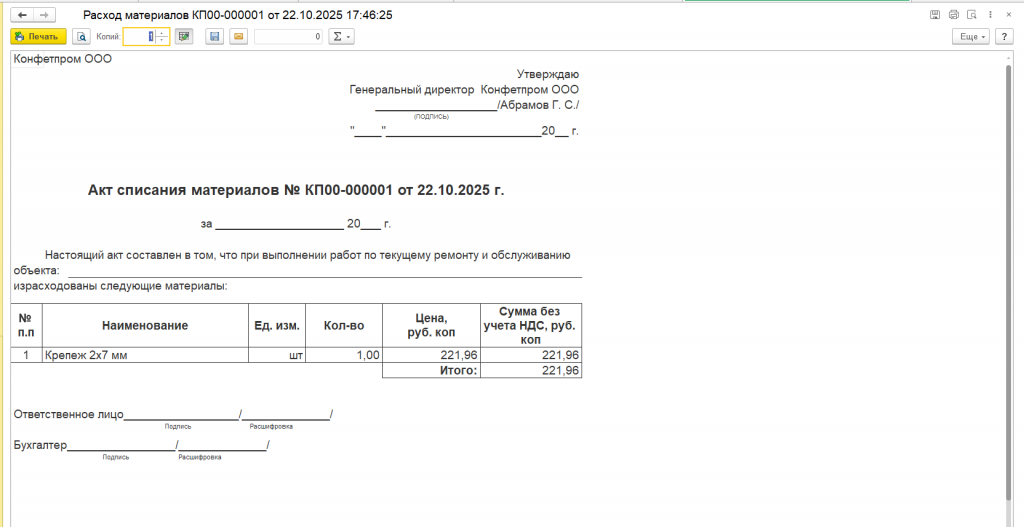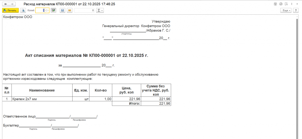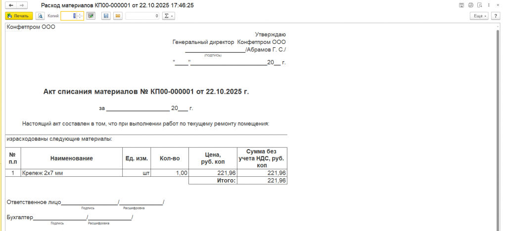 Комплект внешних печатных форм для документов "Расход материалов (Требование-накладная)" Бухгалтерия 3.0