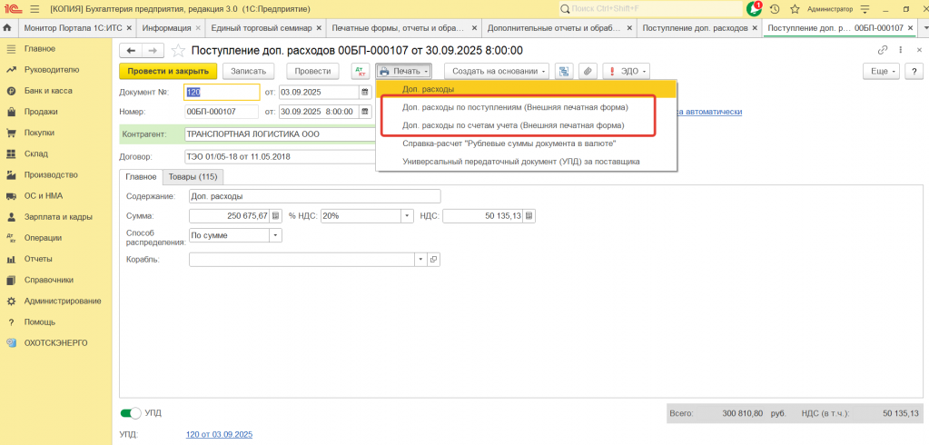 Печатная форма доп. расходов. Доп. расходы по счетам учета. Доп. расходы по поступления Доп. расходы сводно.