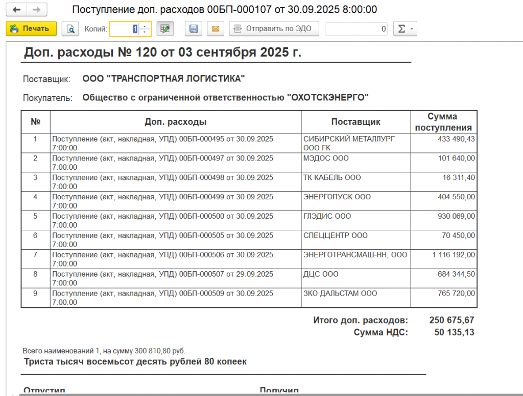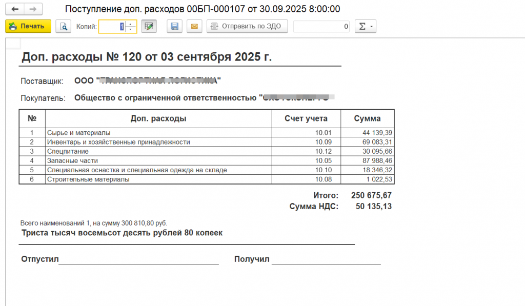 Доп. расходы по поступлениям (внешняя печатная форма):