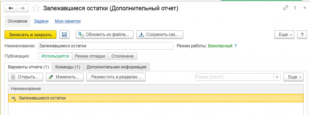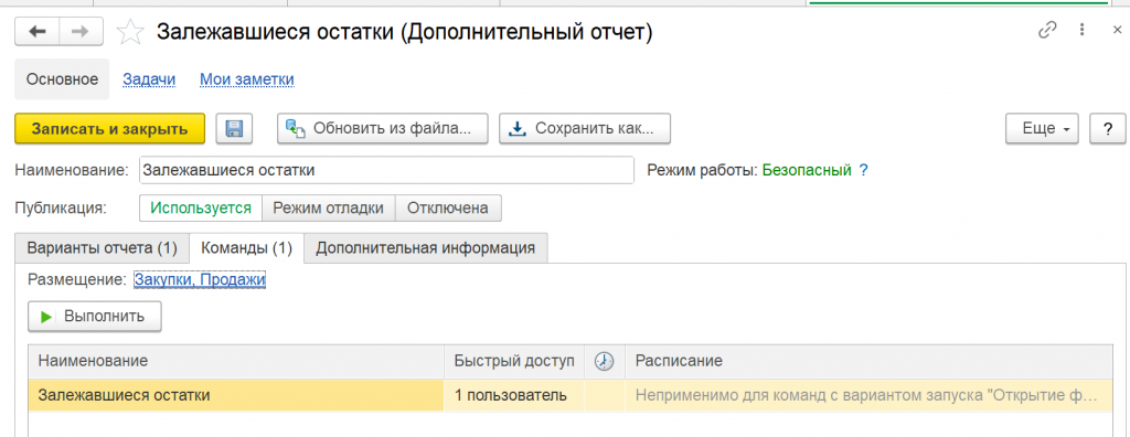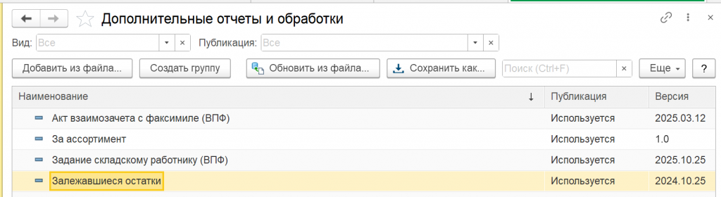 Чтобы отслеживать такой залежалый (неликвидный) товар, был разработан представленный внешний отчет.