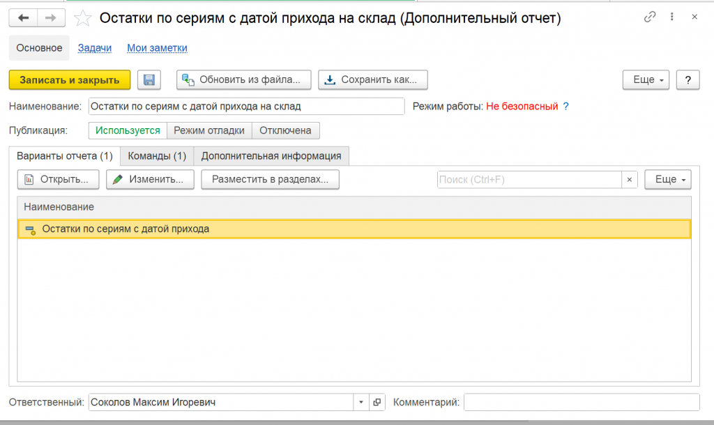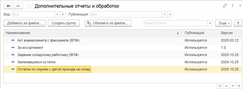P.S. Прошу обратить внимание на то, что данный отчет формировался в демо-базе, поэтому не видно серий номенклатуры, так как они там не заведены.