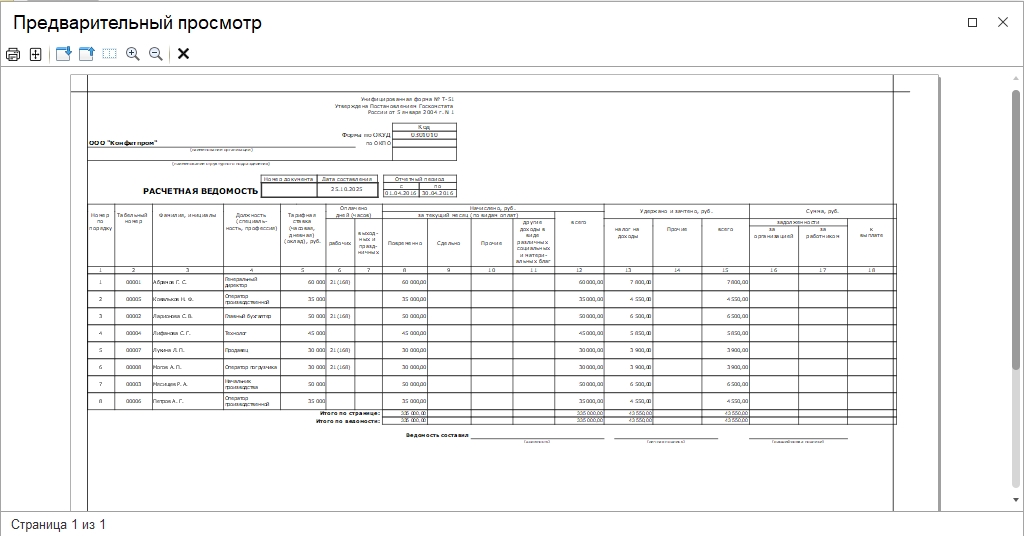 В результате ведомости, которые раньше занимали 1,5-2 листа, теперь аккуратно печатаются на одном.