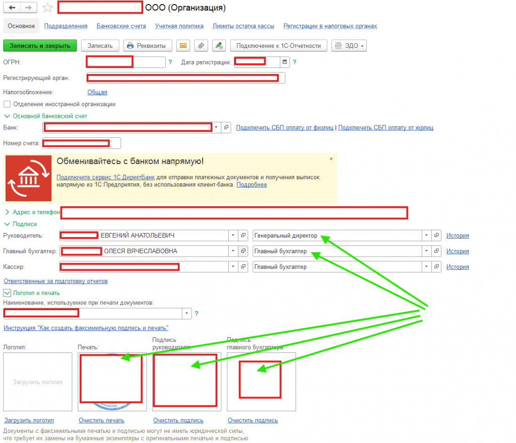 3) Если нужна печать и подпись руководителя ставим галочку «Подпись и печать». (Если акты сверки подписывает главный бухгалтер, в коде оставил комментарии для замены подписанта. Информация берется из справочника Организации.