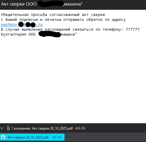 Акт сверки обработка контрагент Бухгалтерия взаиморасчеты Email почта рассылка создание БП