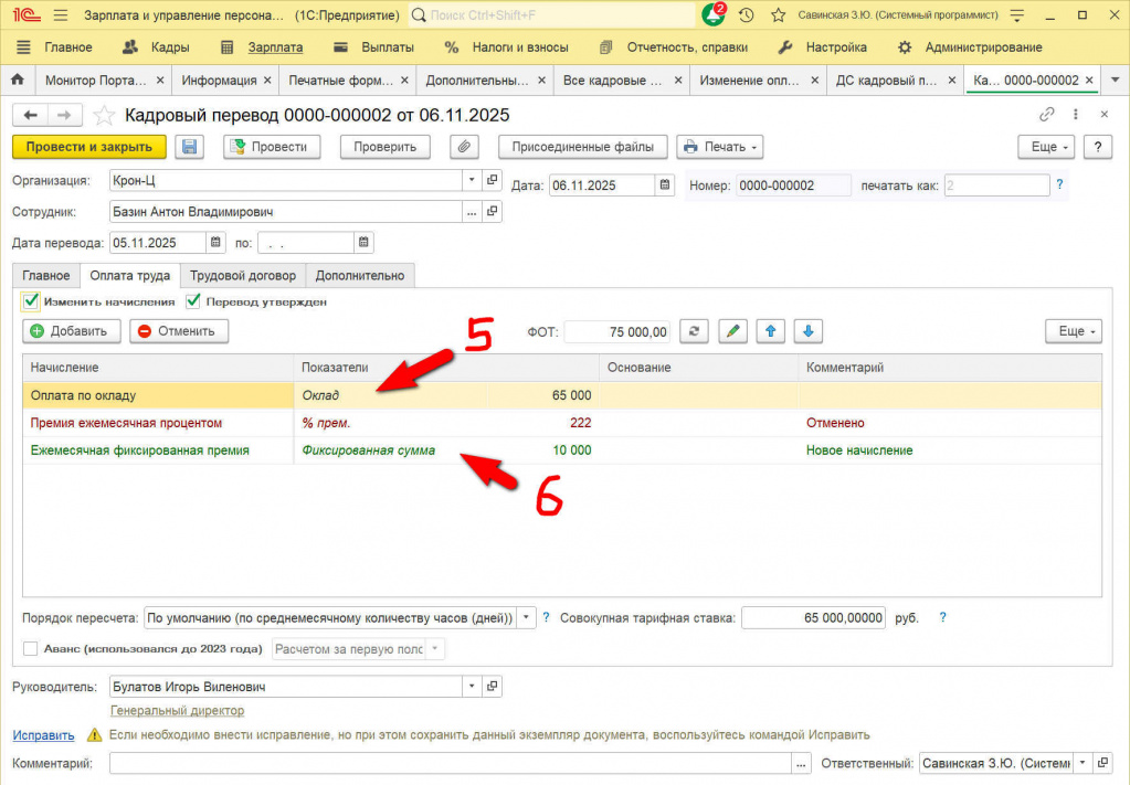 По п.5 (Изменения начислений) учитывается изменение оклада и фикс.премий. Подробности логики работы формы представлены на скринах.