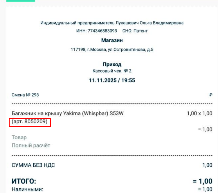 Добавляем в чек, в товарную позицию произвольную информацию, в данном расширении артикул в конец строки номенклатуры