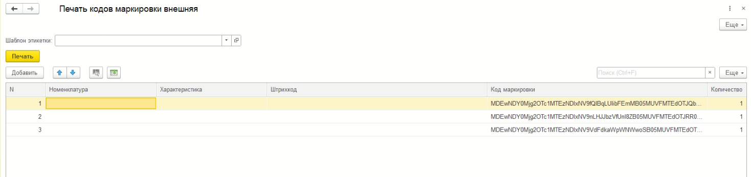 Обработка печати кодов маркировки