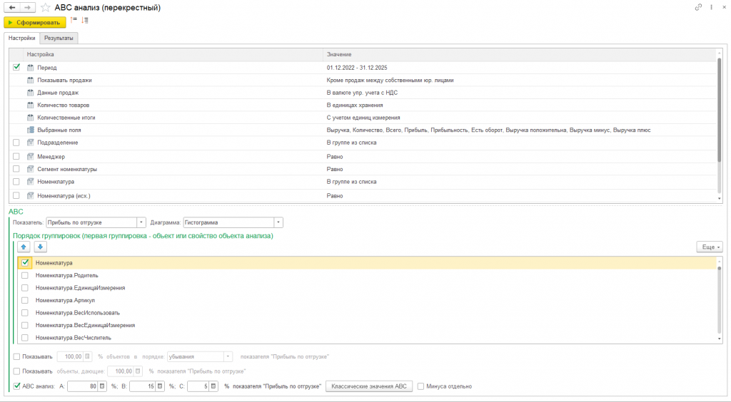 [УТ11.5] ABC анализ с возможностью многоуровневой группировки