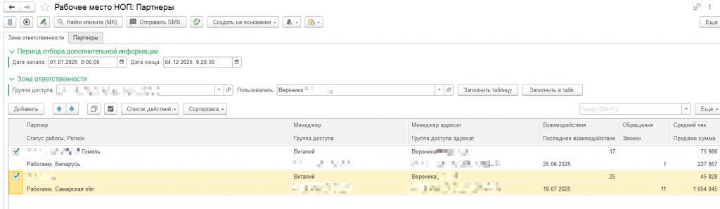 1. Группа "Зона ответственности" это фильтр для отбора по "Группа доступа" и "пользователь" (основной менеджер). Кнопке Заполнить Таблицу отберутся подходящие партнеры.