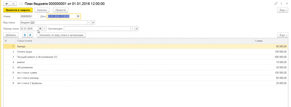 В табличной части для каждой статьи указывается сумма плана.