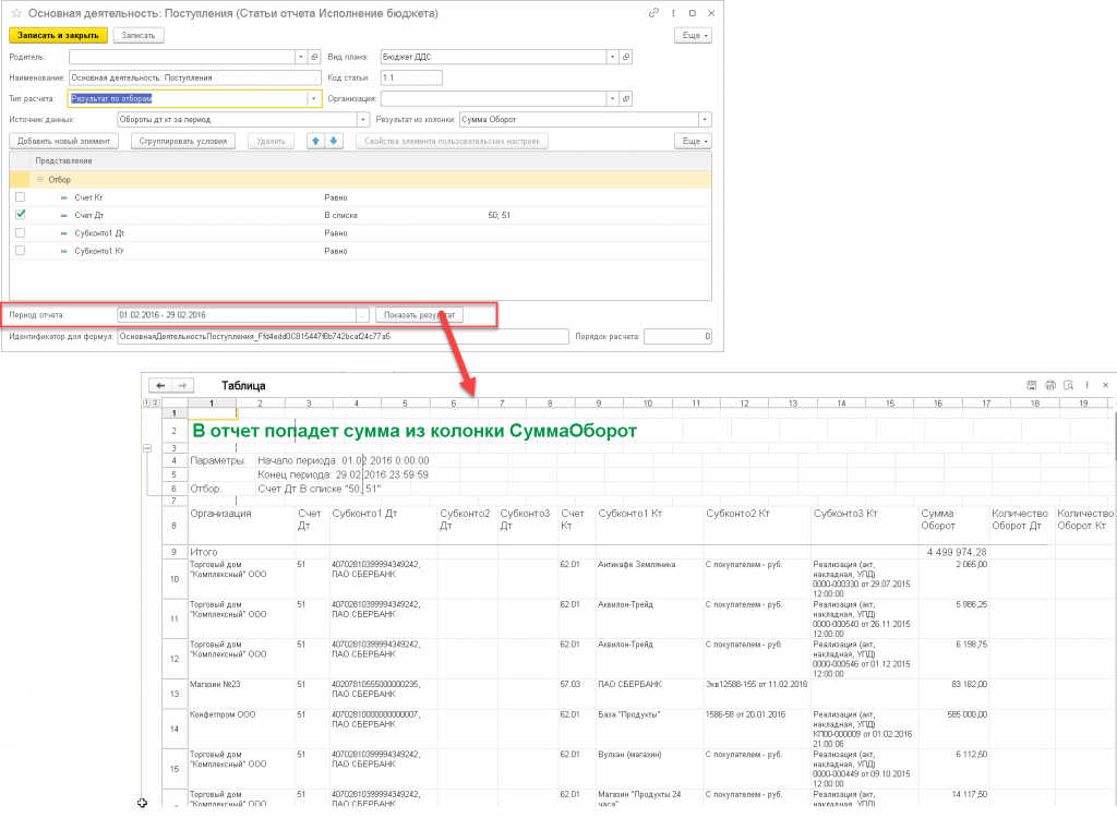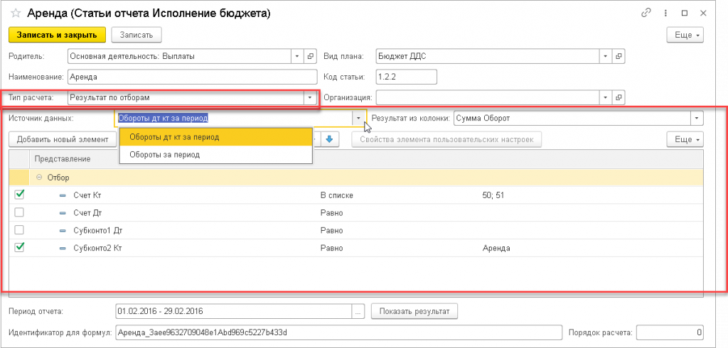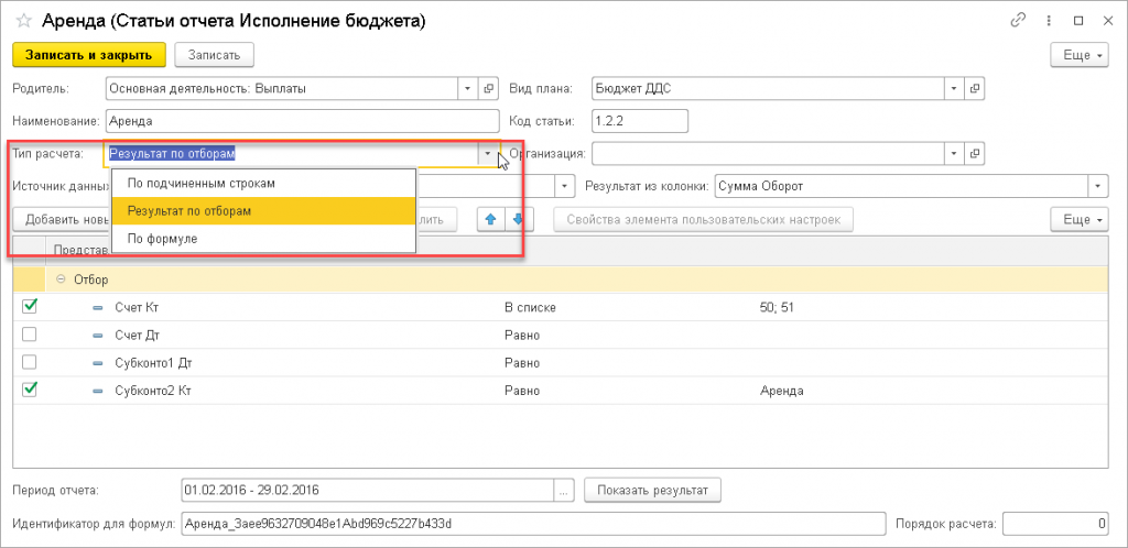 Результат по отборам – результат по статье рассчитывает по отборам СКД.