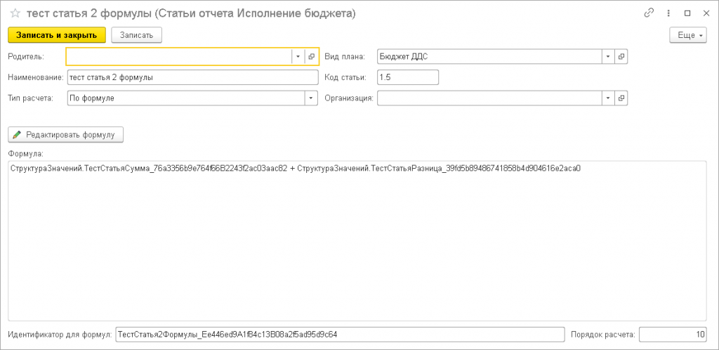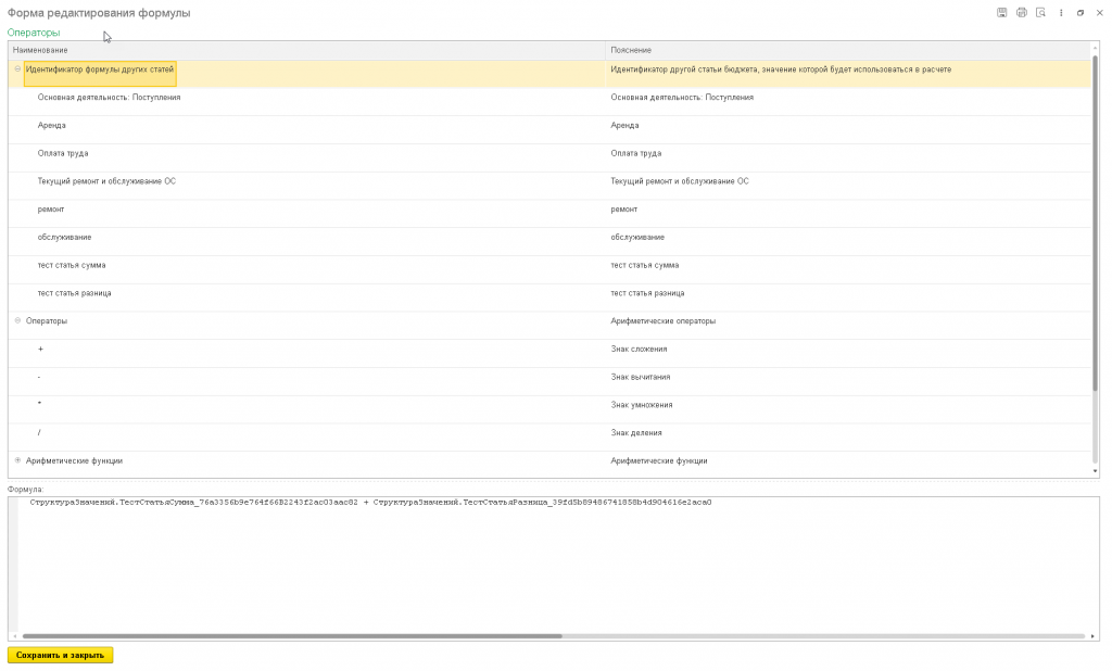 Также поддерживается настройка статей с произвольными формулами расчета, в которых можно использовать другие статьи.