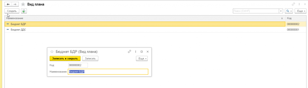 В справочнике Вид плана – задается вид плана бюджета, например, Бюджет ДДС или Бюджет ДДР.