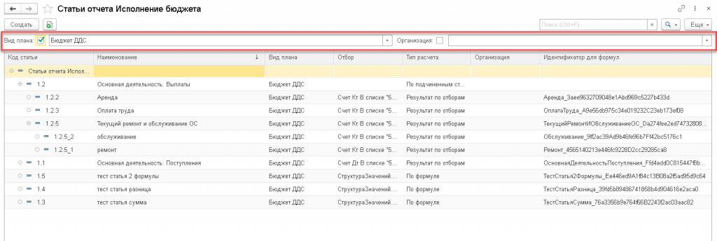 Наименование и код статьи – реквизиты, которые выводятся в отчет, сортировка по умолчанию по коду статьи.