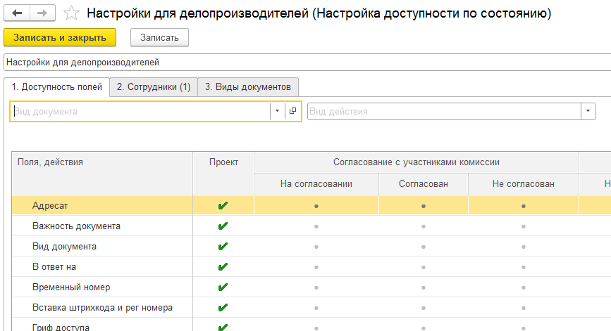 Это справочник, в котором можно задать настройки доступности выбранных полей у выбранных видов документов для различных состояний этих документов и пользователей (ролей).