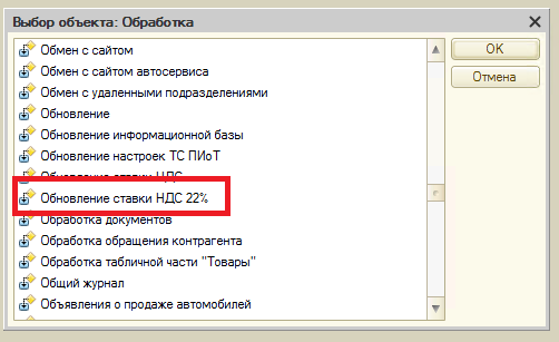 Данная обработка предназначена для обновления ставок НДС. При выполнении обработки будет выполнено следующее: