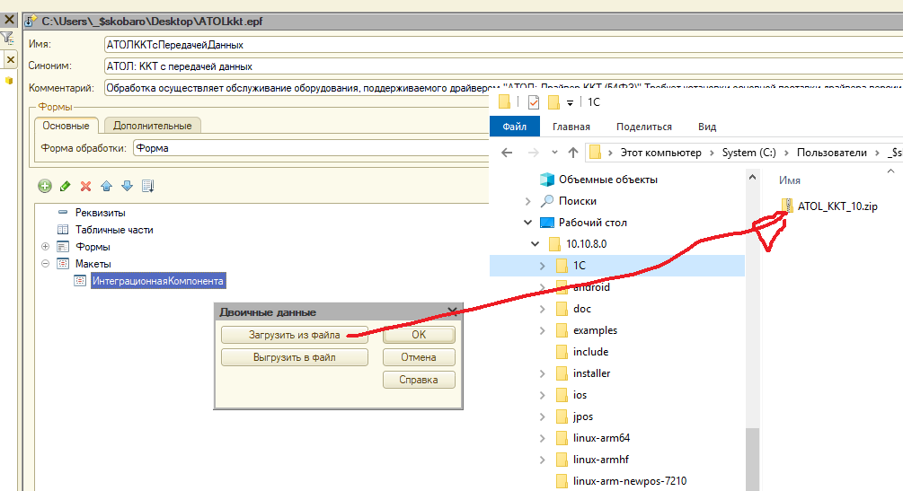 Все остальные работы произвел. Какую то нашел обработку, но называется она иначе Драйвер_ККТ_10.zip пробовал подставить в интеграционную компоненту. Не взлетело(( Не то.