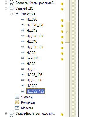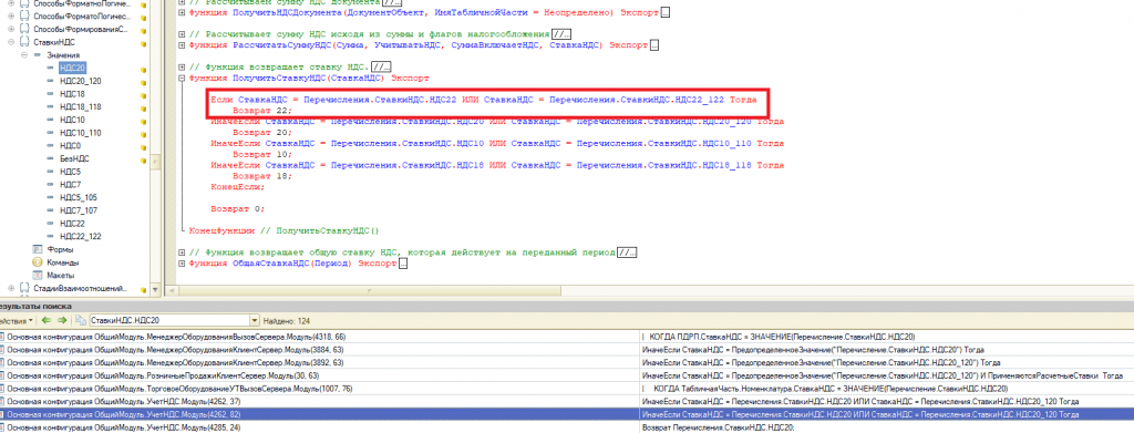 ссылки в 1с где НДС20, добавлены строки для НДС22