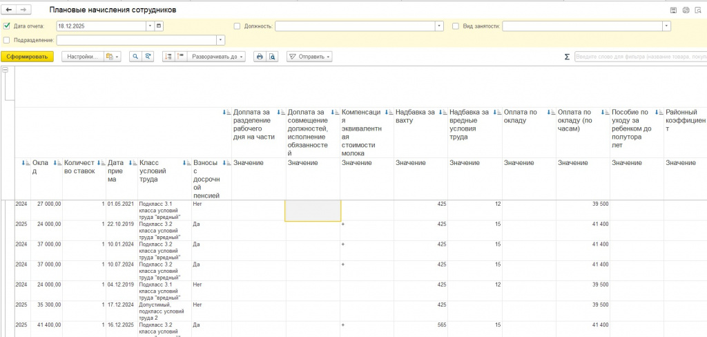 Не нашел готового отчета, чтобы в нем выводились плановые начисления по сотрудникам с выводом показателей начислений.