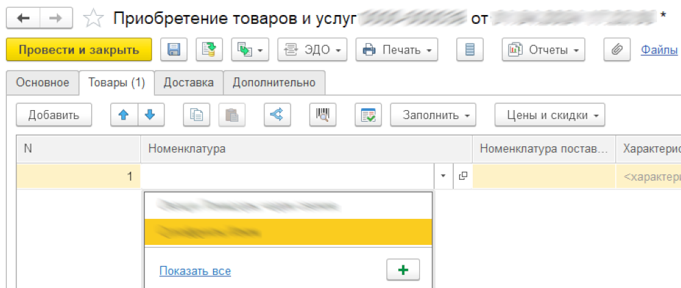 - Отключение вывода помеченных на удаление карточек из списка выбора в форме приобретения товаров.