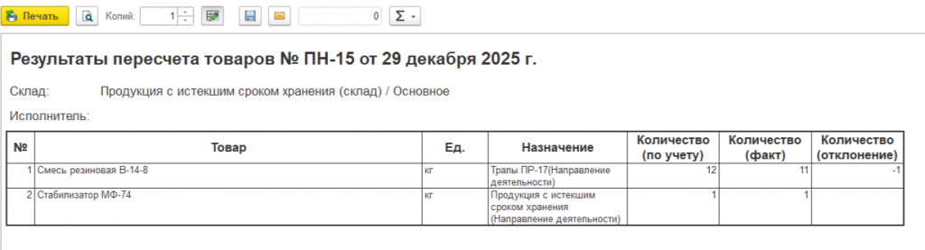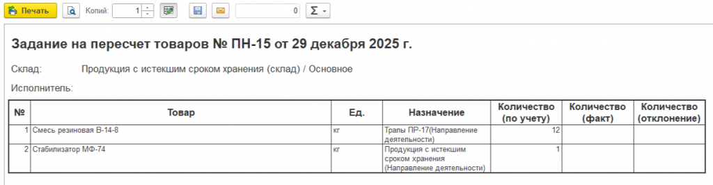 Внешние печатные формы пересчета товара с назначением