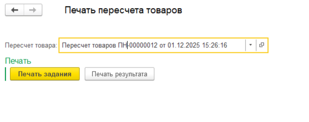 Внешние печатные формы задания на пересчет товара и результата пересчета товара.