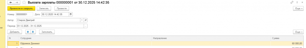 • «Выплата зарплаты» — формирует список к выплате и остатки по взаиморасчетам.