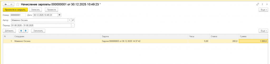 • «Начисление зарплаты» — рассчитывает суммы по подтвержденным часам с учетом ставок.