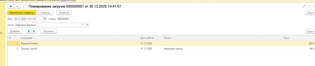 • Планирование загрузки сотрудников на день, неделю, месяц с учетом текущих задач и оставшихся часов.