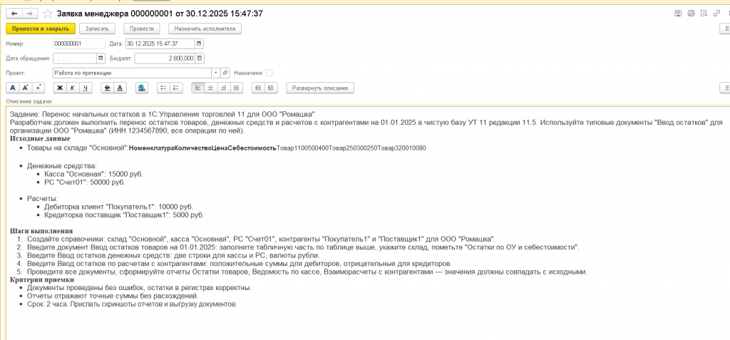 • Менеджер формализует запрос: что сделать, для кого, в рамках какого проекта и бюджета.