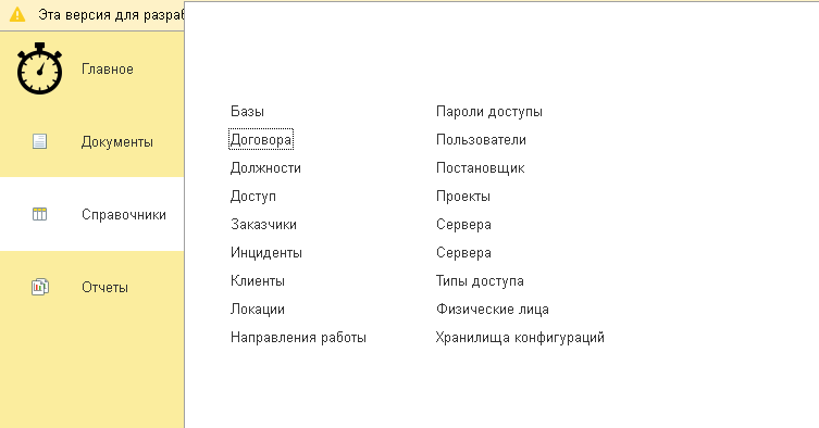 • Сервера и базы данных — список инфраструктуры, связанной с проектами и задачами.